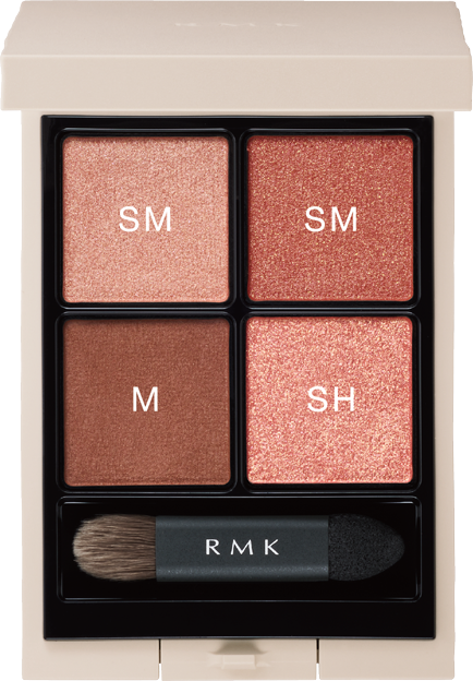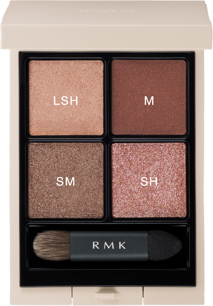RMK 新質感のライトシャイニーを含む、シャイニー、シマー、マットのきらめきやツヤを放つ質感と色は、それぞれが主役級でありながら4色すべてを重ねても濁らず、奥ゆきを生みながらもダークにならない設計を追求しました。